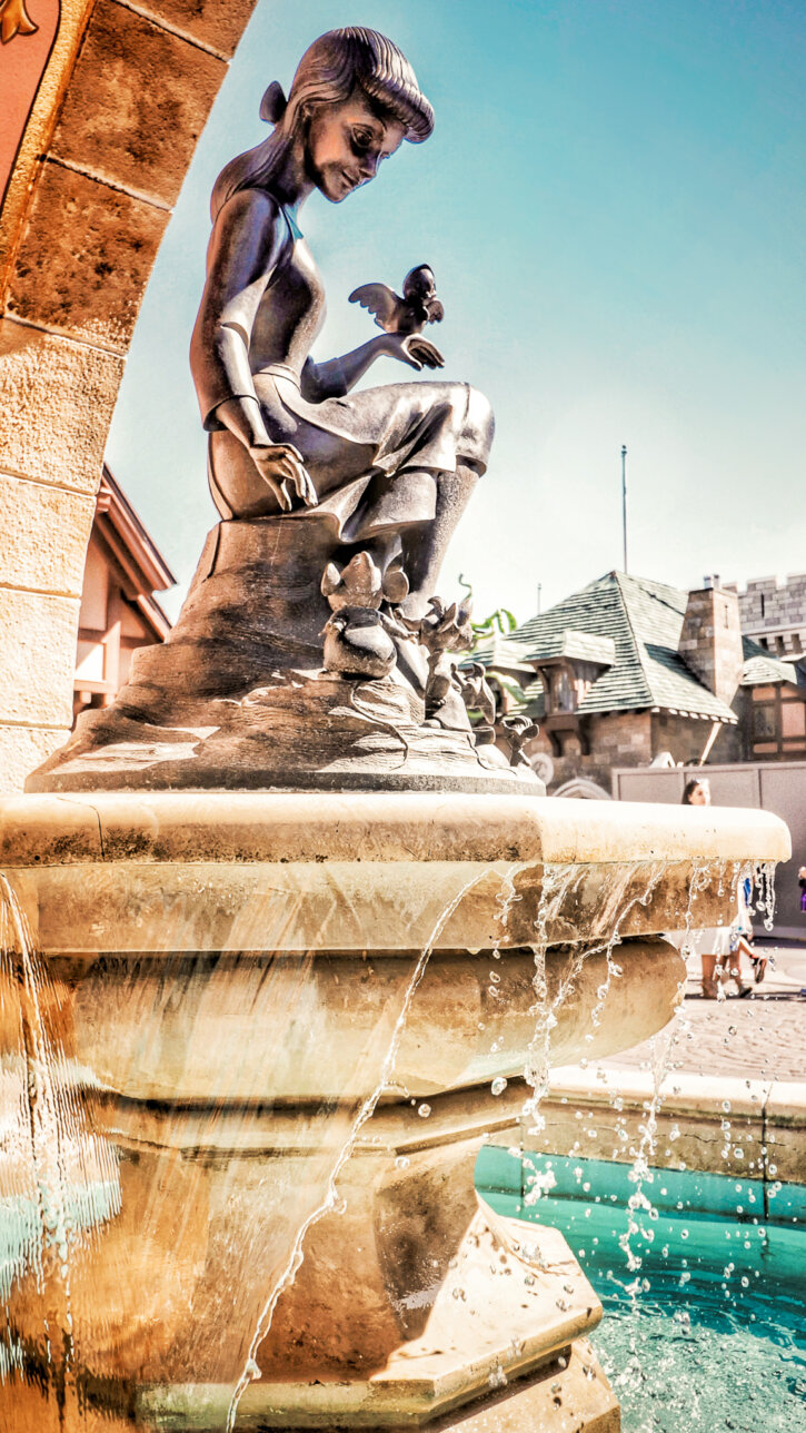 Perspectiva forçada nos parques Disney: como a arquitetura do Castelo da Cinderela e Main Street U.S.A. usa ilusão de escala para ampliar a experiência.