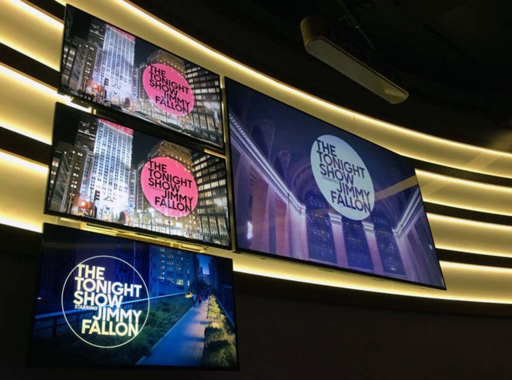No horário marcado, entrei na atração e recebi um cartão azul. Fui pra uma área de espera onde todos estavam com o mesmo cartão azul. A área de espera é uma galeria com fotos e objetos dos apresentadores que já passaram pelo “Tonight Show”, entre eles Jay Leno, Johnny Carson e o atual Jimmy Fallon.