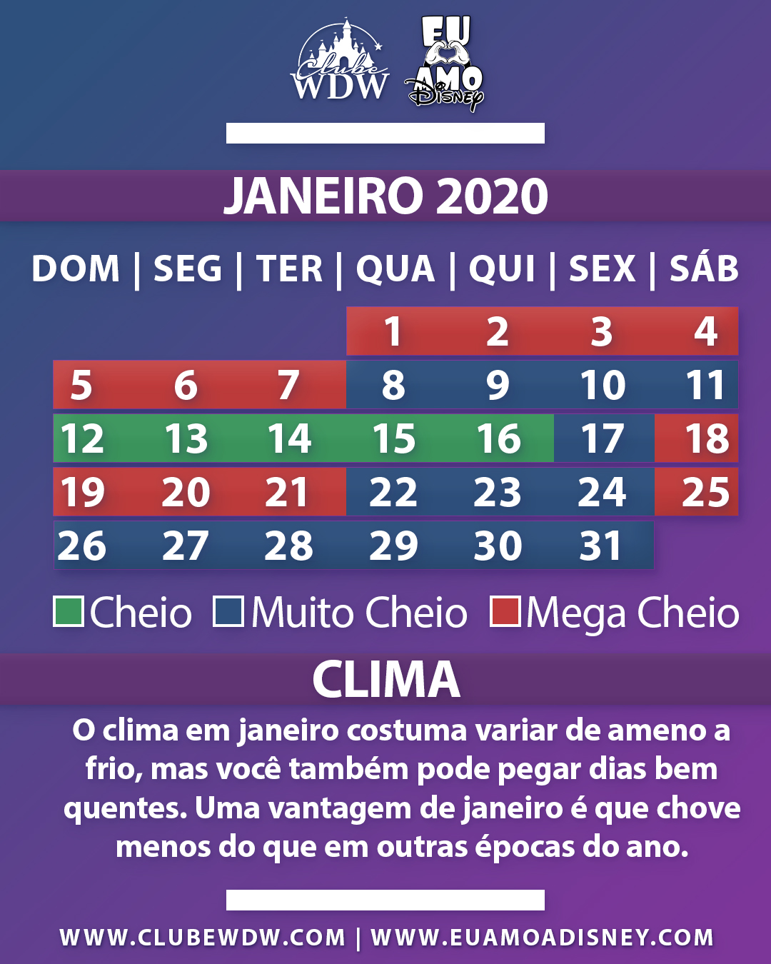 Como é o movimento e clima na Disney em Janeiro?