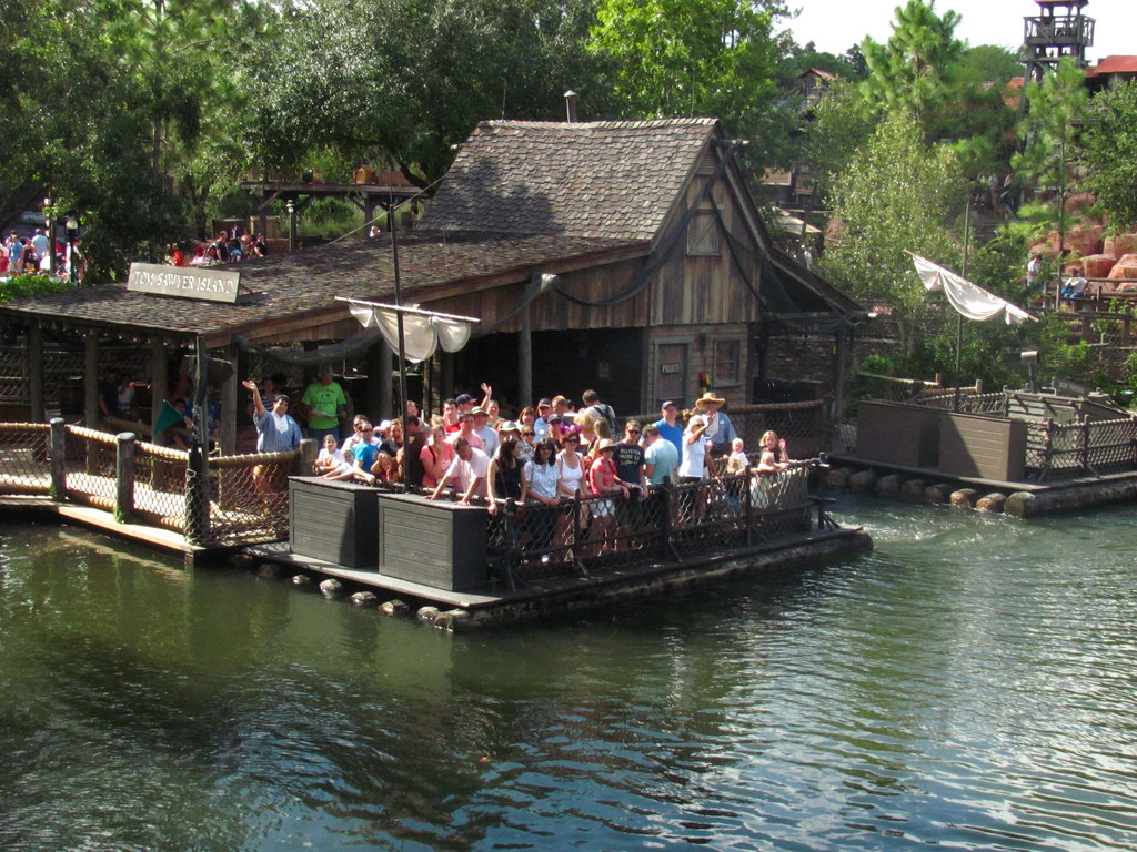 O acesso é pela balsa da Frontierland e há sempre duas operando simultaneamente.